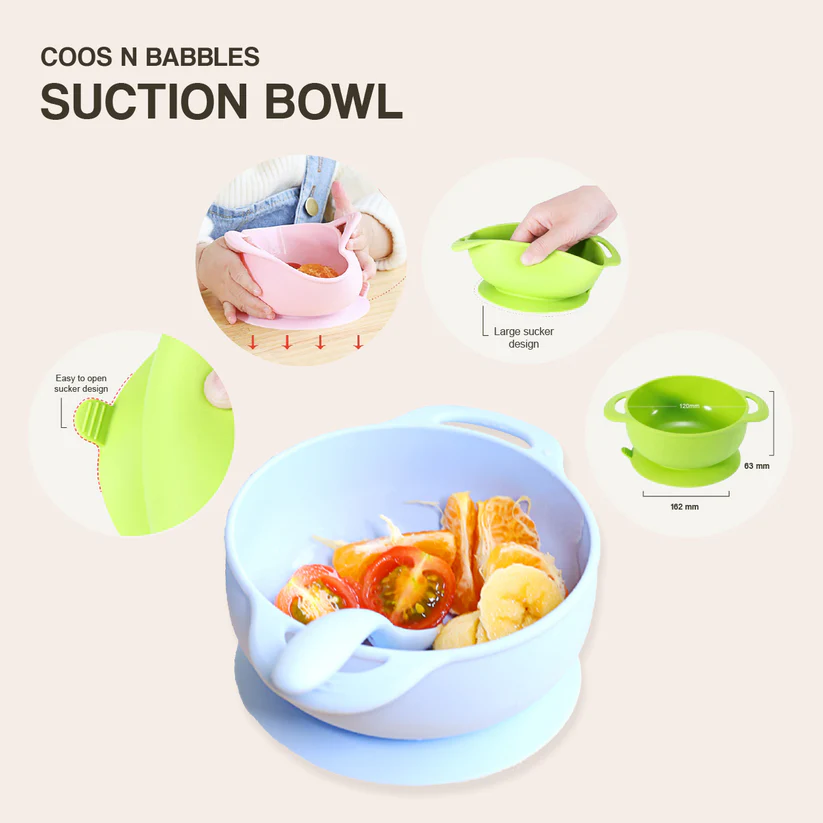 • CONTENTS : Contains 1 Suction Plate, 1 Suction Bowl, 1 Sippy Straw Cup, 1 Silicone Bib and 1 Silicone Spoon and Fork Set.