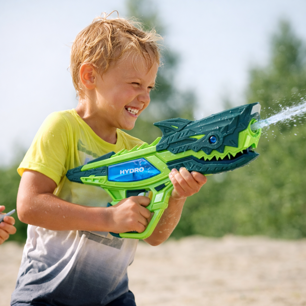 Unique dinosaur-shaped water gun that adds a playful and eye-catching look to every water fight. Kids love the cool dino theme.