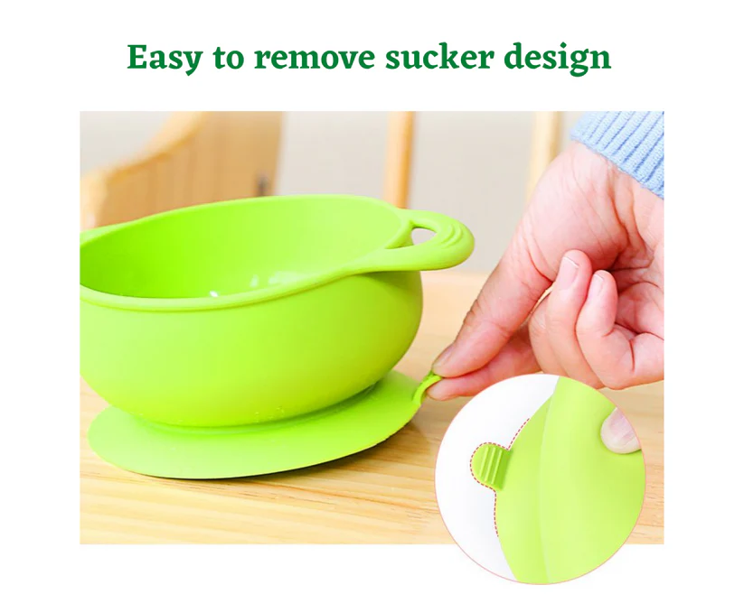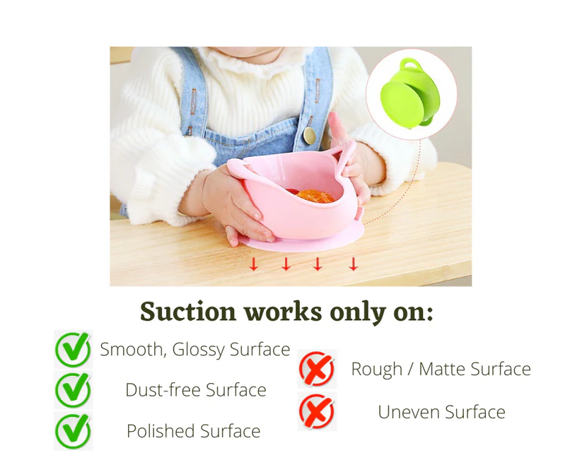 - FIRST SELF-FEEDING SET : These bowls help babies learn to eat on their  own. The suction ensures that the bowl doesn’t slip or flip over however hard the baby tries. This reduces the cleaning time for moms. The bowl set is ideal for 6 months + babies.
